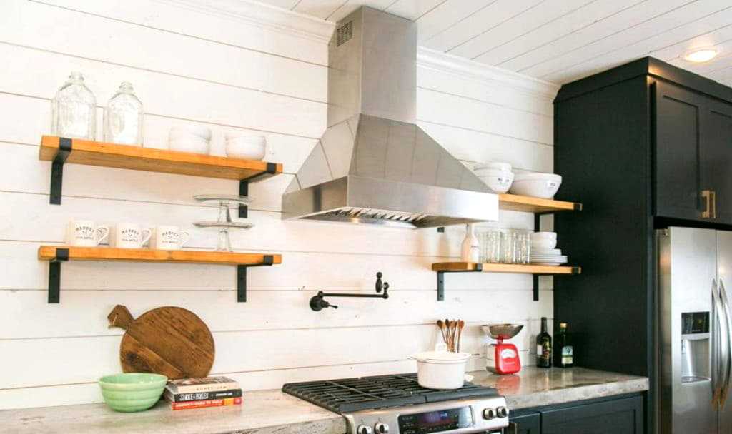 Такое оборудование на кухне часто является элементом дизайна. Каркасы выполняют из дерева, стекла, гипсокартонных листов или фанеры в разных формах и с декором, что напрямую влияет на устройство кухонной вытяжки.
