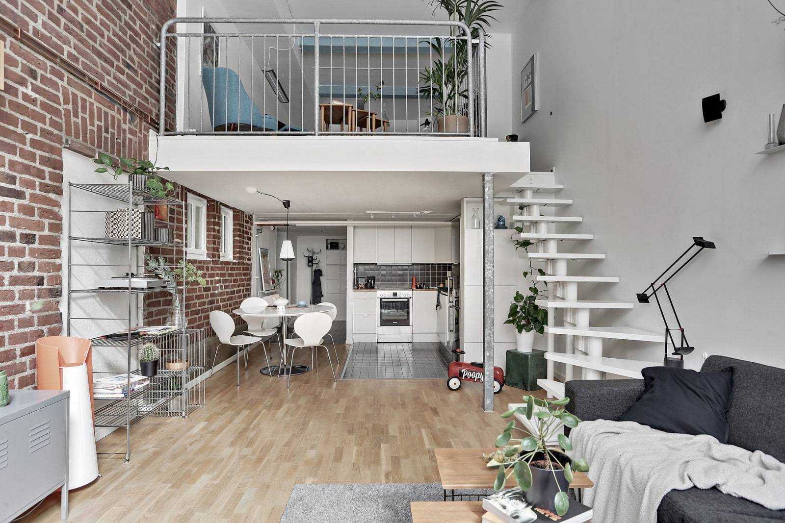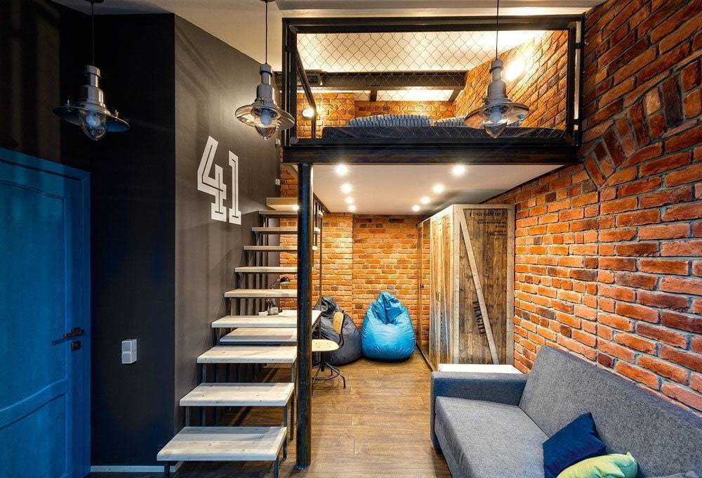 На фото маленькая двухуровневая квартира-студия, выдержанная в стиле лофт.