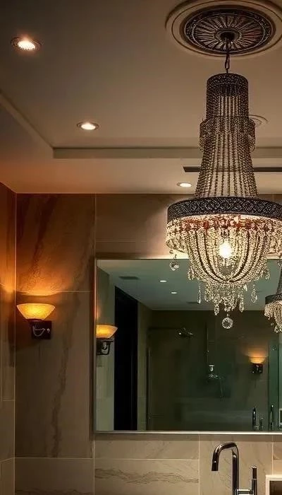 - Общее освещение: Обеспечивает равномерное освещение всей ванной комнаты. Это могут быть потолочные светильники, люстры или встроенные светильники.