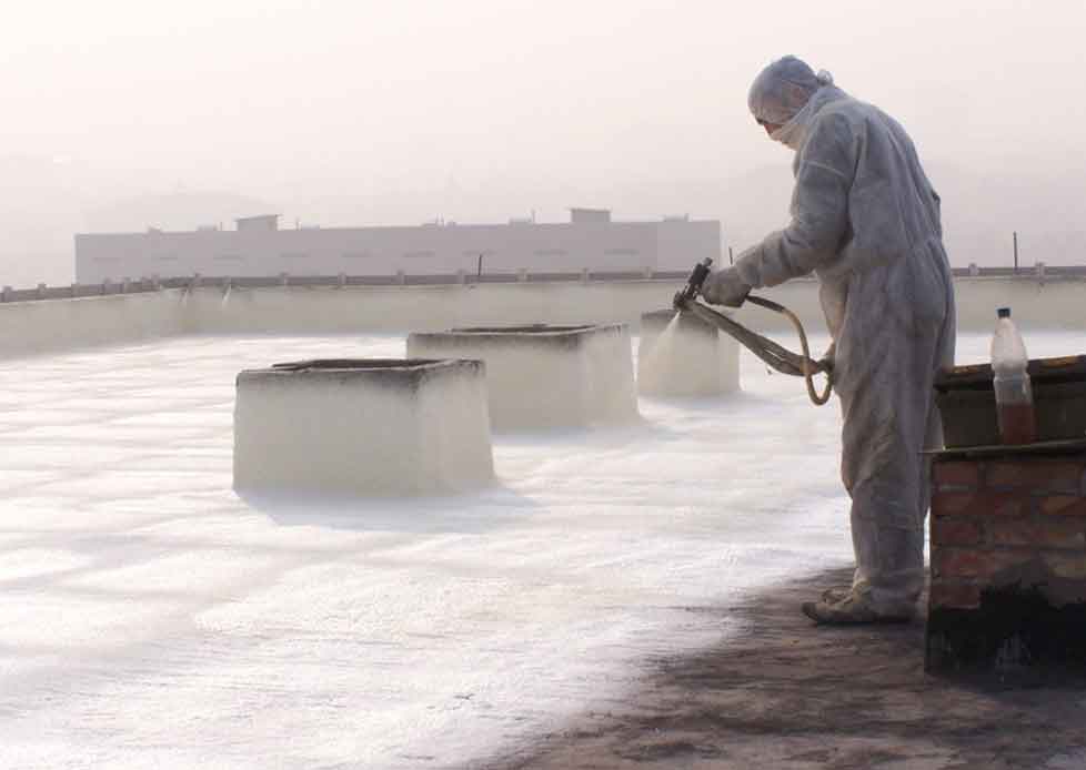 Нанесение жидкого утеплителя на плоскую крышу