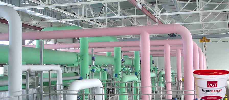 Жидкую теплоизоляцию применяют для утепления трубопроводов в газовой и нефтяной промышленности, а так же для труб водоснабжения. Такое покрытие сокращает потери тепла, а так же дает защиту от химического и механического воздействия. Для этого выпускается специальная линейка теплокрасок, предназначенная для труб.