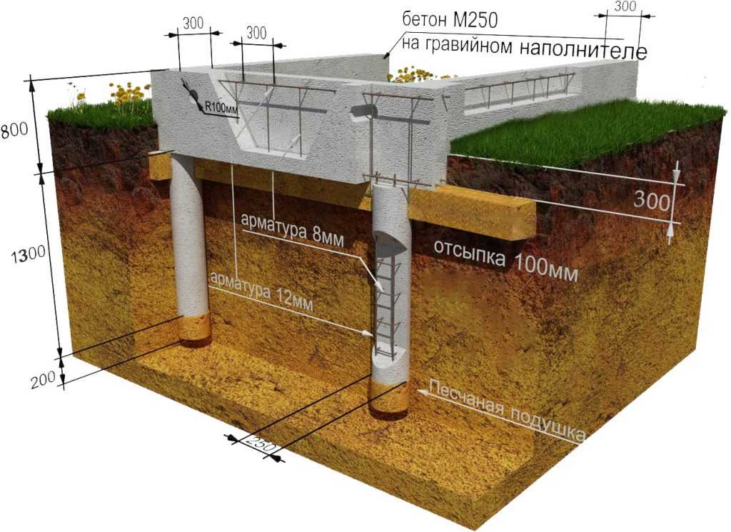 Сочетания этих элементов дают возможность получить наиболее подходящую конструкцию фундамента, обладающую оптимальным набором параметров для заданных условий.