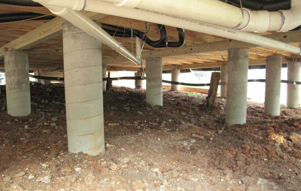 В небольших строениях сваи или фундаментные столбы могут располагаться только по углам дома. В домах с большой площадью сваи ставят также посредине наружных стен в нескольких местах.