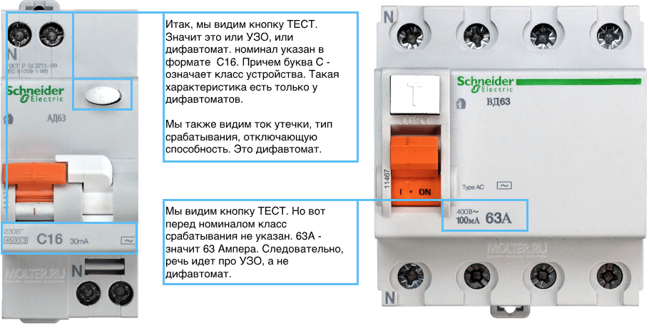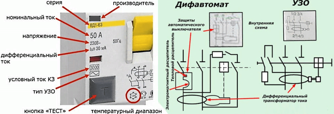 - дифференциальный автомат, другое название АВДТ – автоматический выключатель диф. тока;