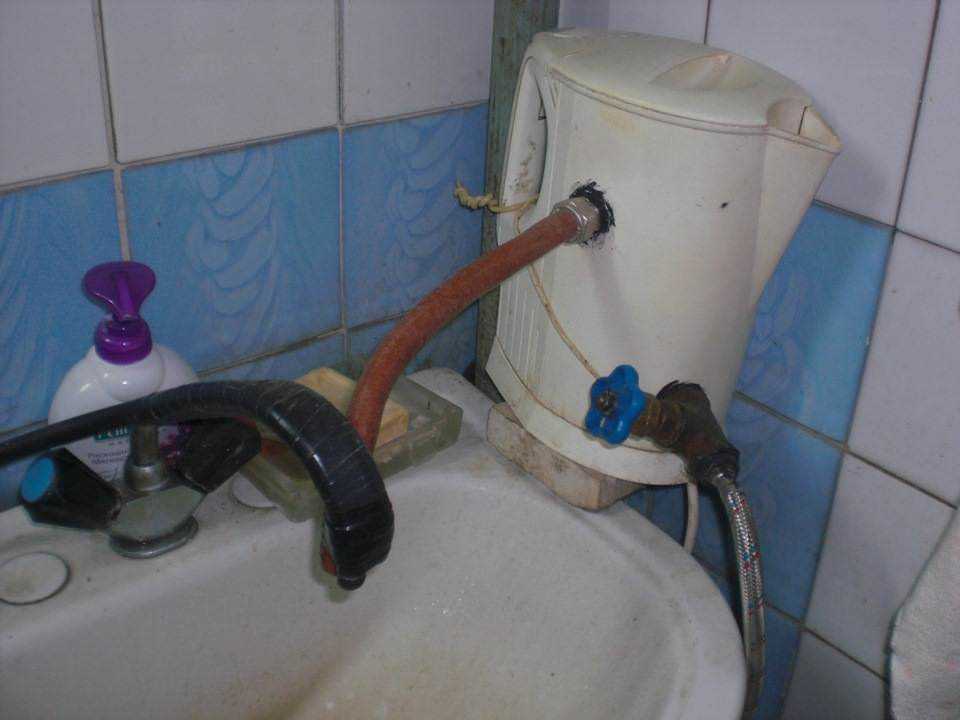 Поэтому, если проточный водонагреватель, только из магазина и не хочет работать, то первым делом откройте посильнее воду. Обычно прибор ставится вместо крана, часто имеет в комплекте душевую насадку. Вот почему требования к классу защиты корпуса особые. Обычно это не ниже ip25. Мы полагаем, что самодельный проточный водонагреватель в ванной ставить нельзя ни в коем случае. Просто нет возможности гарантировать на сто процентов то, что корпус будет собран по всем нормам. Другое дело – поставить его где-нибудь в закутке, где никто до него не дотронется. И, конечно же, корпус следует заземлить, чтобы чего не вышло. Можно это сделать через вилку, или оставить клемму прямо на корпусе. (См. также: Водонагреватель для бассейна своими руками)