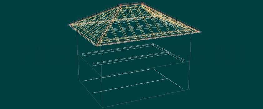 В качестве источника нагрузки на грунт возьмем двухэтажный дом 6 × 8 метров с внутренней силовой стеной.