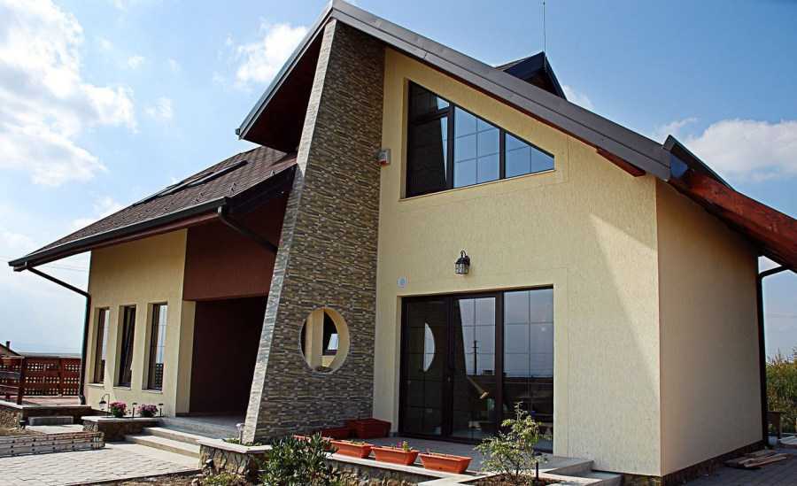 Комбинированным называют дом в два этажа, стены которого построены из камня и дерева. Стены первого яруса альпийского шале, которое и стало образцом для подражания, выкладывали из бута. Верхний этаж, в котором традиционно располагались спальные помещения, надстраивался из окоренного бревна.