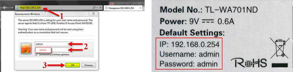 Дальше на компьютере, который подключен к сети, откройте браузер и пропишите в адресной строке IP повторителя. Узнать какой айпи адрес у ретранслятора совсем не сложно, внимательно посмотрите на корпусе, должно быть там написано. Там же вы найдете и логин с паролем, для входа.