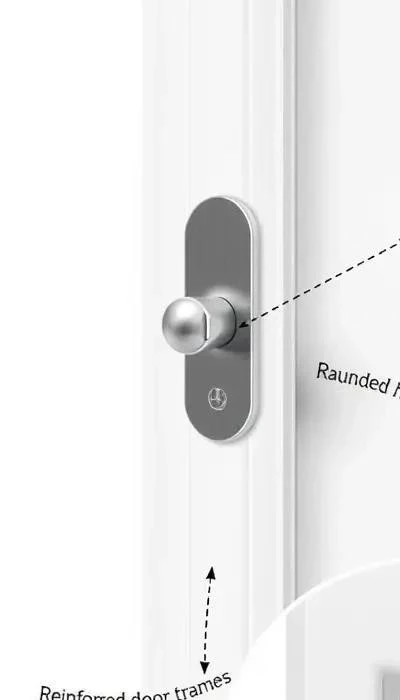 - Отсутствие острых углов: Все углы двери должны быть закруглены или обработаны специальными накладками.