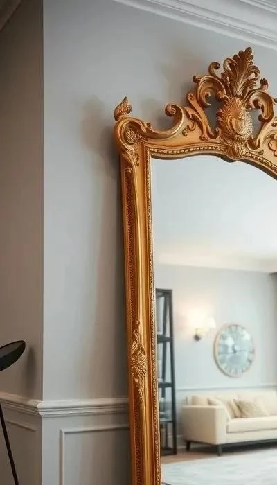 - Напольные зеркала: Идеальны для небольших гостиных, так как визуально увеличивают пространство. Могут быть как отдельно стоящими, так и прислоненными к стене.