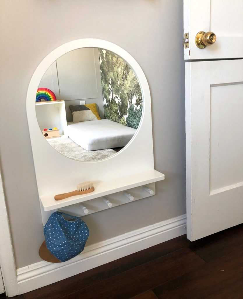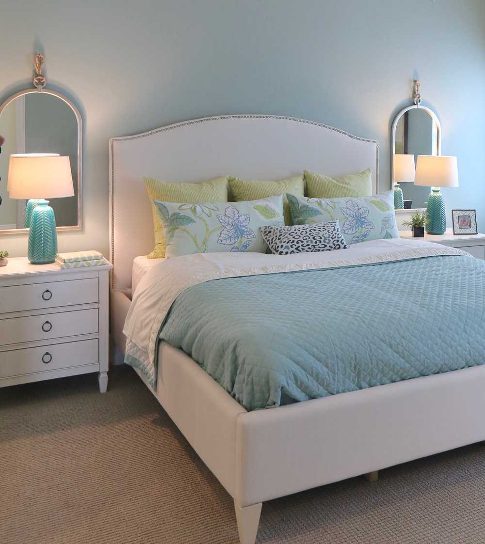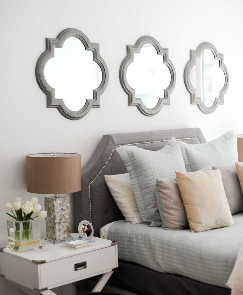 Но правила не говорят категоричное «нет» на использование зеркал, и если использовать такой элемент с умом, можно кардинально преобразить пространство. Зеркало может быть как тяжелое в раме, так и мобильное, которое можно передвинуть (или отвернуть) в любой момент. К тому же, визуально комната станет еще больше, да и прекрасным барышням такое решение придется по вкусу — всегда приятно посмотреть на себя, выбрав вещь из гардероба.
