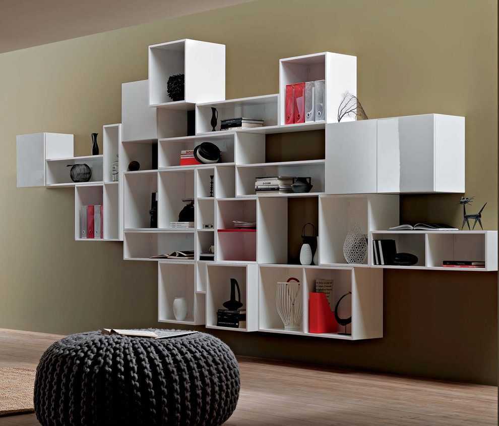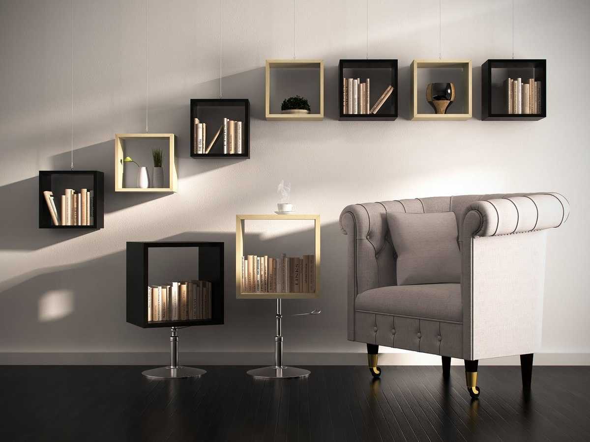 Современная библиотека должна соответствовать строгим принципам – не только хранить литературный запас, но и быть достойным украшением гостиной. Освежить интерьер могут модули разные по величине и ориентации