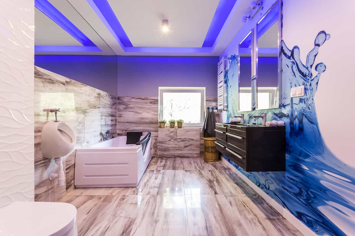 Как уже упоминалось, максимальный эффект достигается при соблюдении перечисленных условий. Выбор цвета распространяется на все атрибуты помещения: облицовку, покрытие пола, мебель, декор.