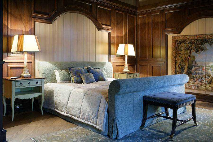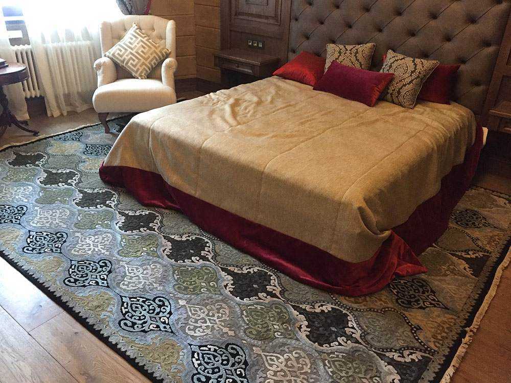 Индийский шелковый ковер в классической спальне