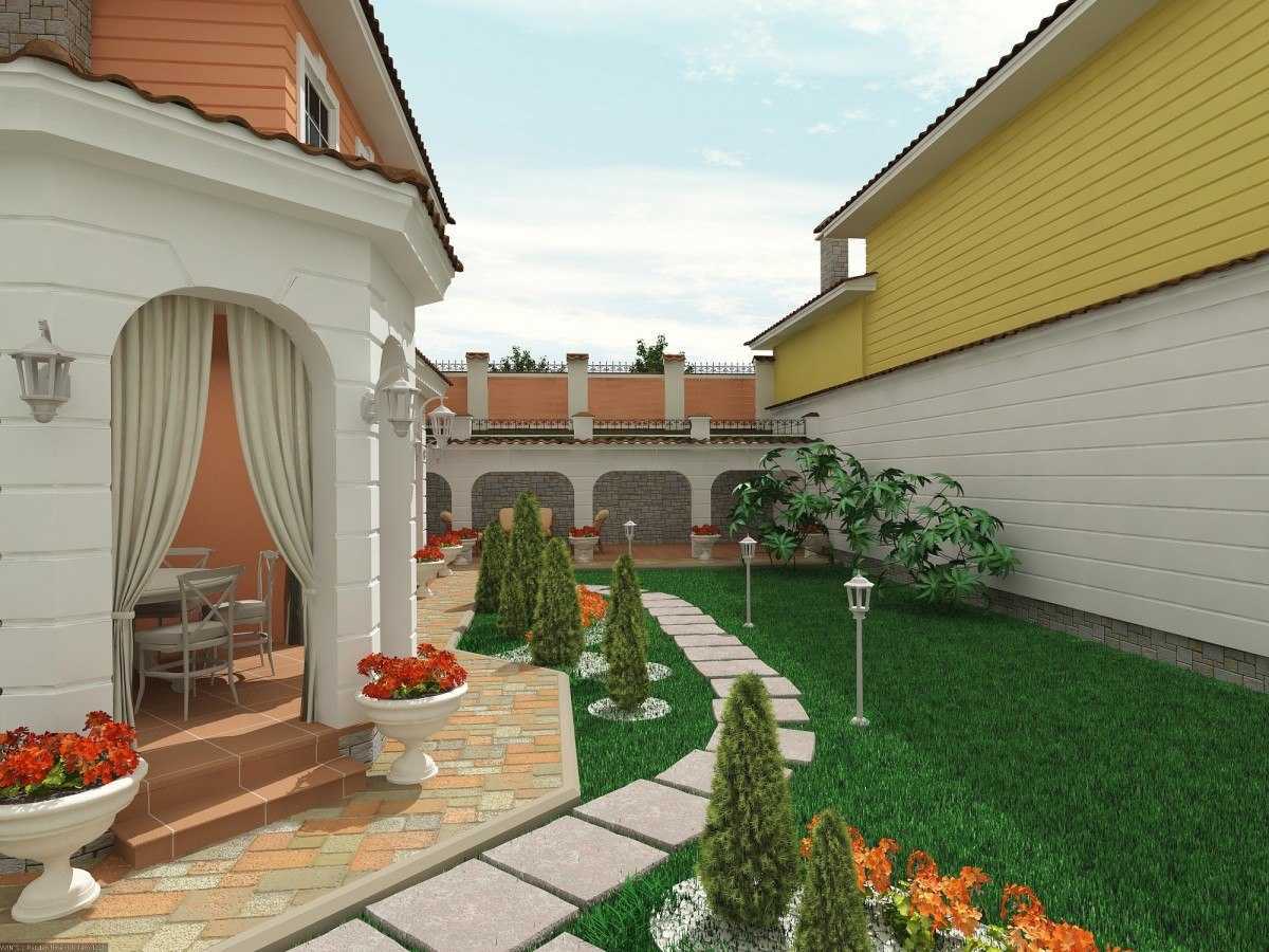 Дизайн двора своими руками требует серьезного подхода уже на этапе строительства дома. В числе особенностей, которые надо учесть: