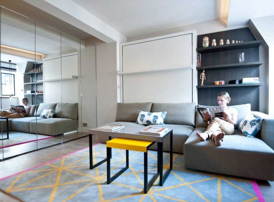 В однокомнатной квартире трудно выделить отдельное помещение для гостиной, поэтому ее часто объединяют со спальней. В таком случае удобнее всего в качестве спального места использовать раскладной диван.