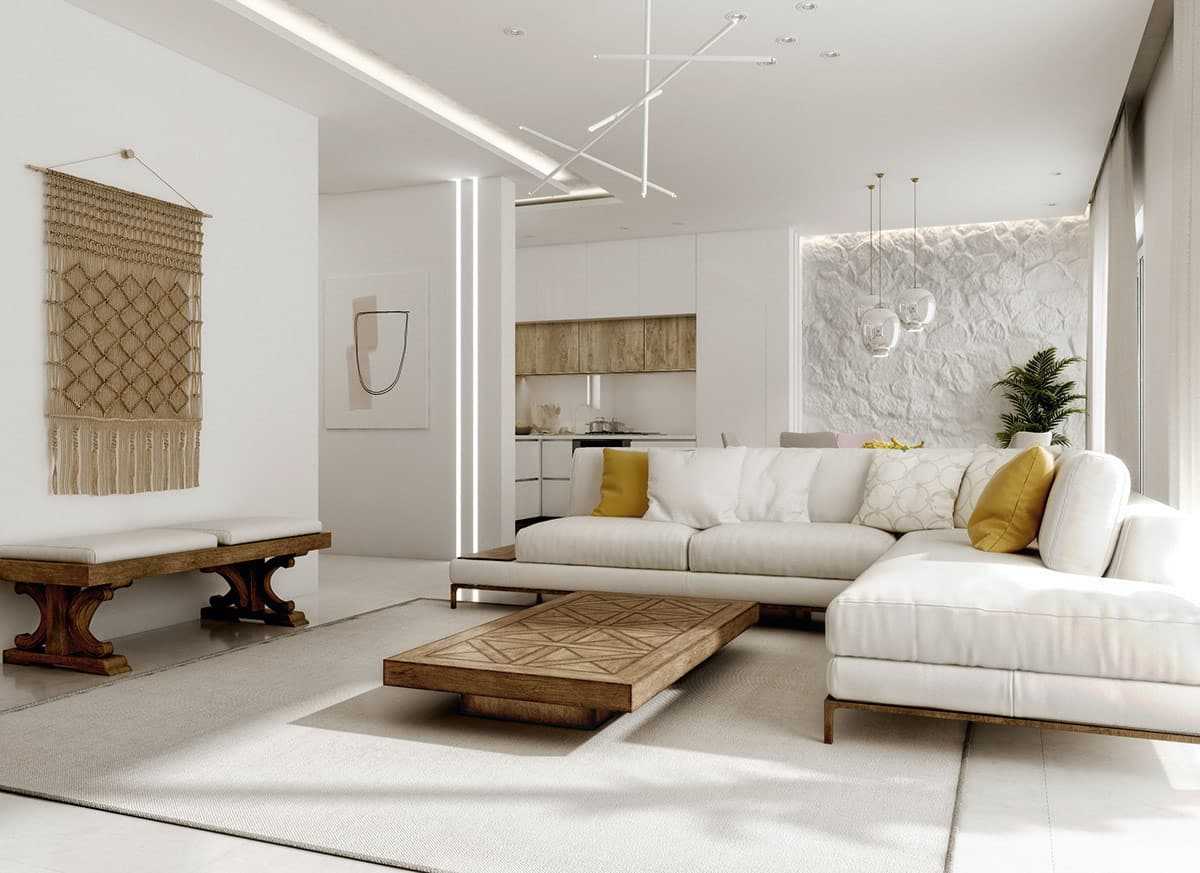 Модный дизайн гостиной 2020 — натуральные материалы и фактура