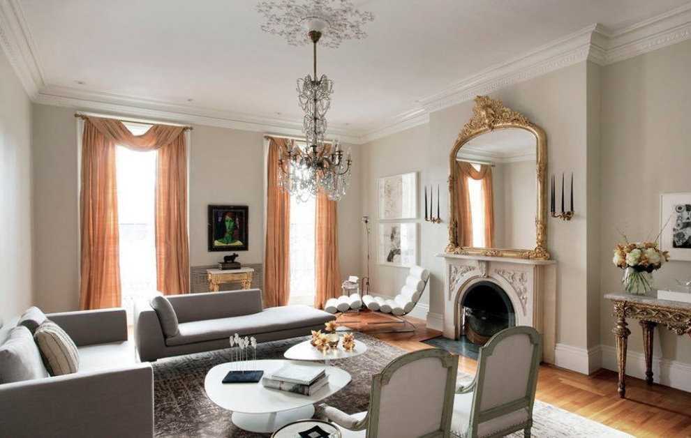 Возможно применение в гостиной и более сложных стилей. Эти варианты подходят прежде всего для просторных помещений.