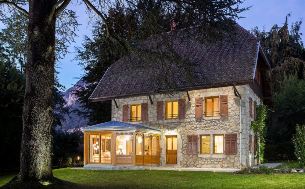Палитра дома во французском стиле в Нормандии ближе к натуральным красно-коричневым гаммам, с добавлением серых, песочных, розовых оттенков.