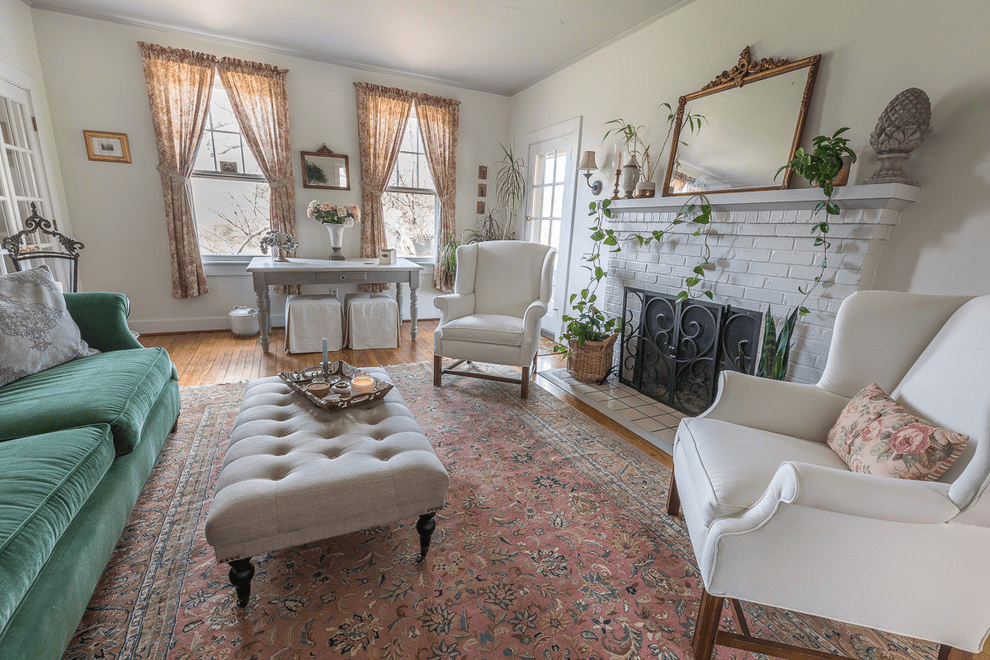 Этот стиль прост и наивен: лаконичная деревянная мебель, цветочные узоры, натуральные ткани и материалы. Однако умеренным его назвать сложно, ведь эту разновидность стиля кантри отличает обилие декоративных элементов, мягкой мебели и текстиля.