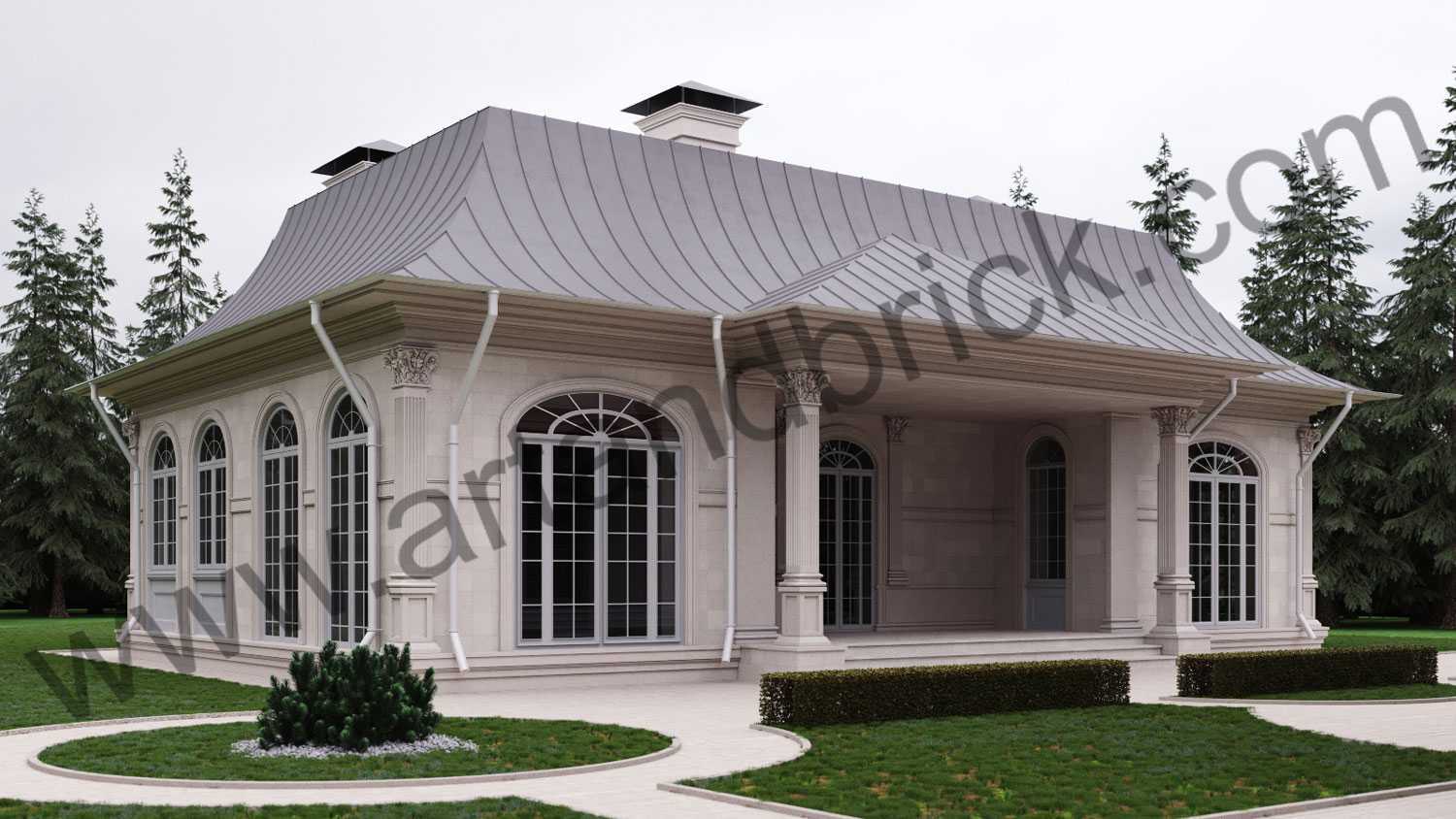 Отделка дома планируется из натурального камня с декоративными деталями из архбетона.