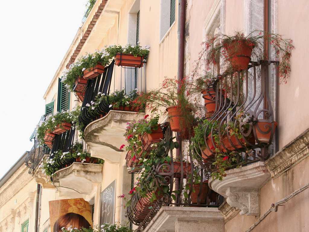 Кованый парапет можно дополнительно украсить подвесными ящиками или горшками для цветов: помимо эстетической функции, буйная растительность будет выступать еще и в качестве дополнительного фактора приватности, закрывая вход на балкон от любопытных взглядов снизу.