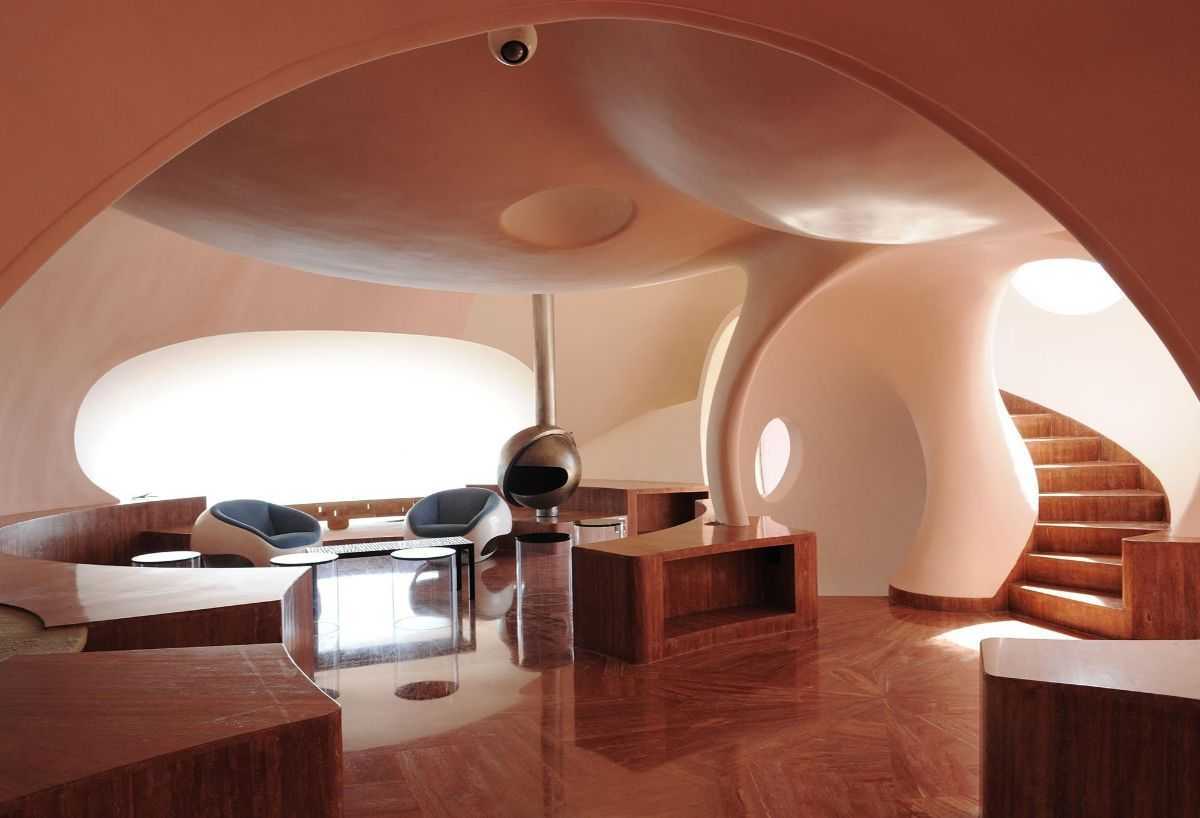 Интерьер не должен получаться симметричным. Дизайнеры, наоборот, стремятся добавить в него заметную асимметрию. Это удаётся сделать при помощи объёмных изогнутых конструкций на потолке и стенах, декоративных арок и ниш. Даже небольшая комната может разбиваться на отдельные зоны.