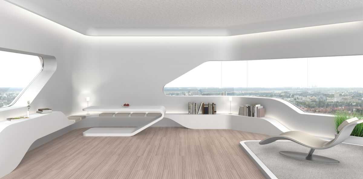 В современной интерпретации футуристический стиль в дизайне получил несколько иное звучание. Сегодня упор делается на системы «Умный дом». Однако в отличие от хай-тека, где интерьер обыгрывается вокруг ультрасовременной техники, в футуризме она второстепенна.