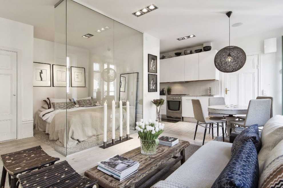 Если однокомнатная квартира около 30-35 кв. м, то можно переделать ее в студию. Перегородки «съедают» полезное пространство. Прихожая и кухня станут частью общей комнаты, но зато пространство становится функциональным.