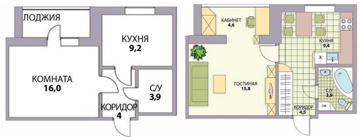 Переделка однокомнатной квартиры в уютную двухкомнатную для разного количества человек