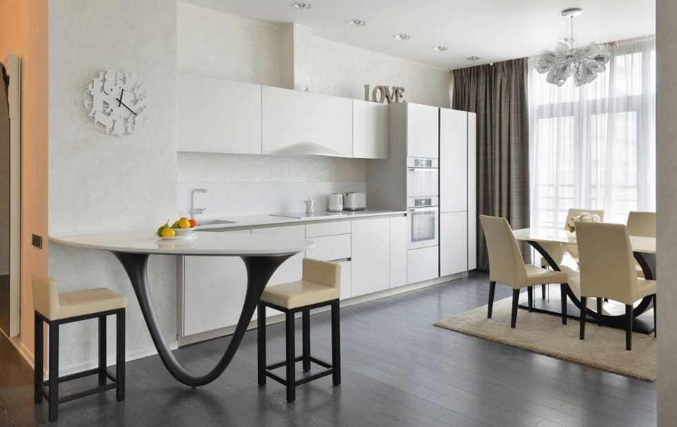 Бытовая техника, использующаяся на кухне-студии, должна соответствовать особенностям помещения, сочетаться с дизайном, дополнять и украшать его.