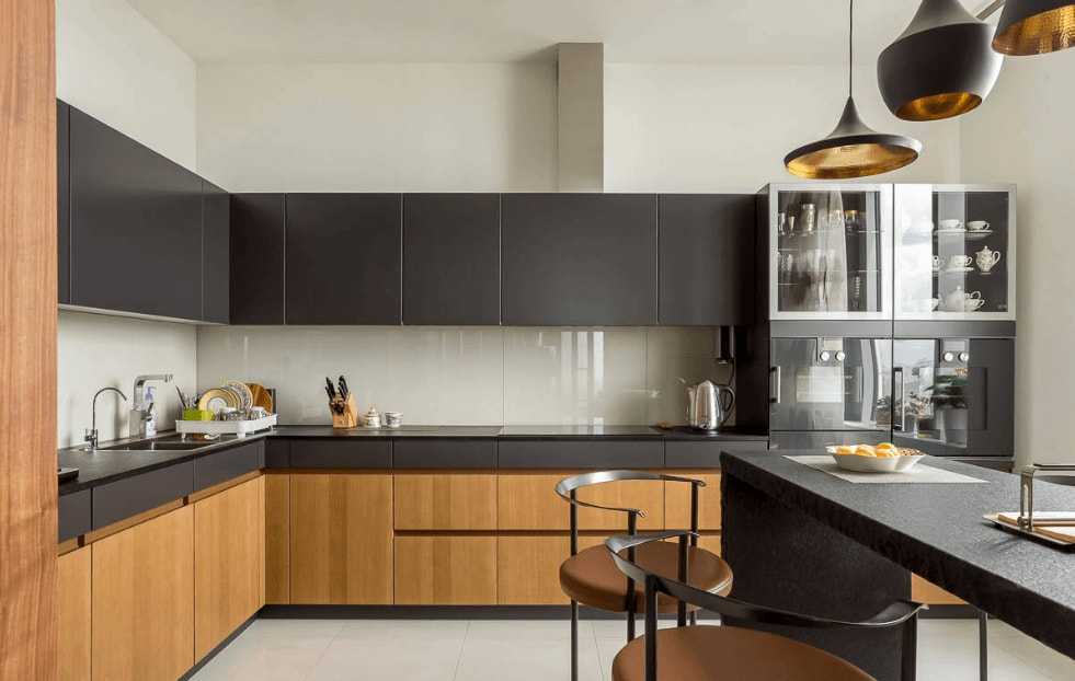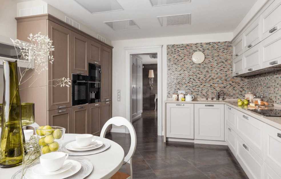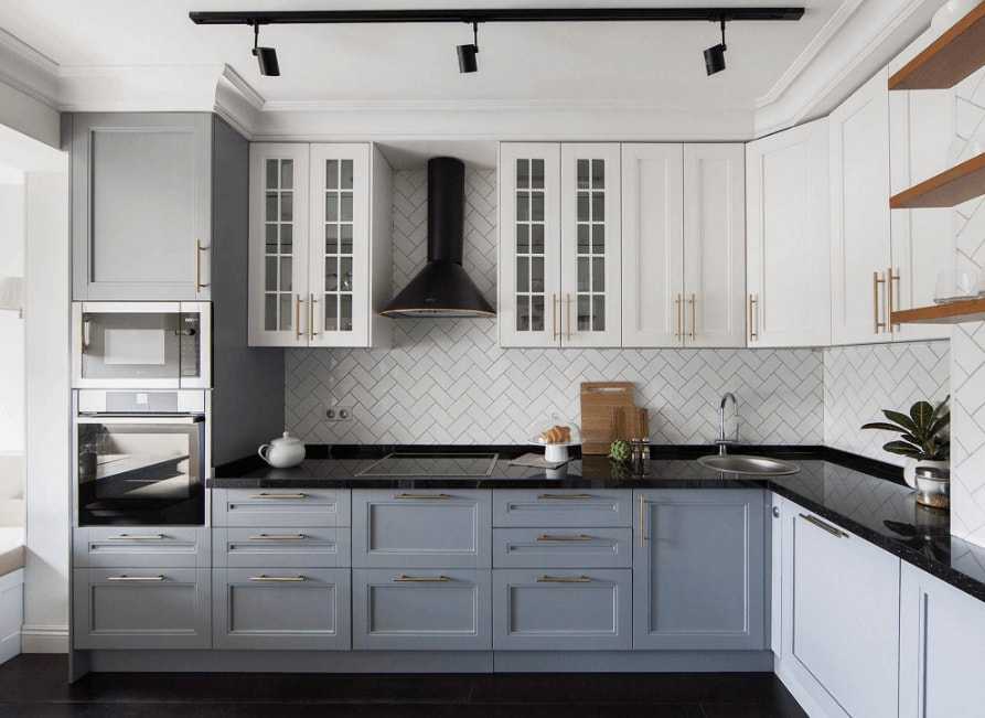 Контрастные оттенки на кухне все также можно использовать. Однако рекомендуем выбирать не классический черный и белый цвет. Присмотритесь к различным оттенкам, таким как графитовый или темно-серый, а также молочный, бежевый. Подобные сочетания смотрятся не менее эффектно и стильно.