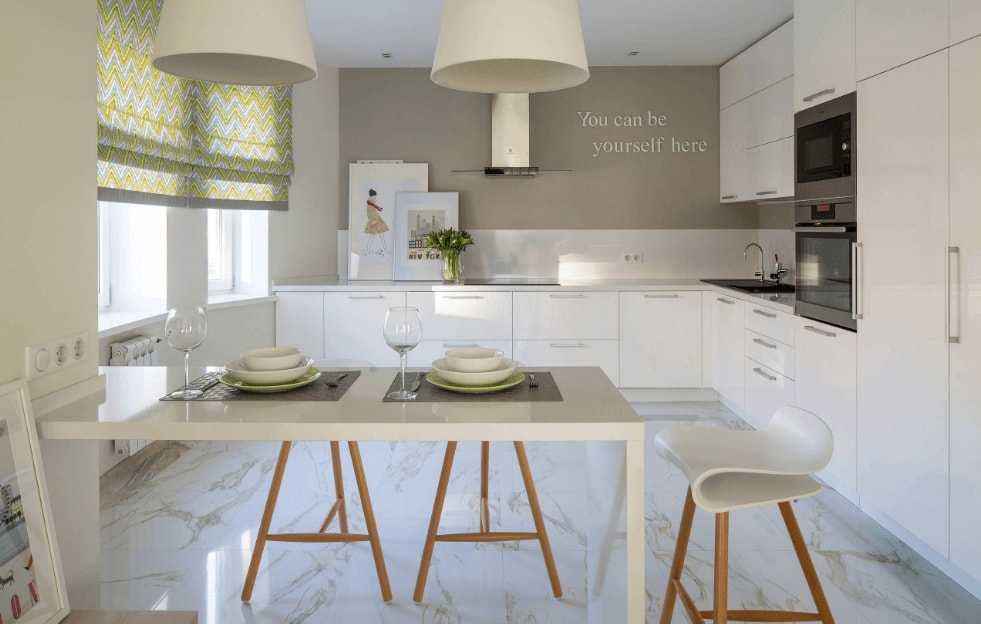 Что касается цветовой гаммы, то в 2018 году она поменяла свое направление. Раньше дизайнеры рекомендовали присмотреться к природным оттенкам, как ярким, так и более сдержанным. Сейчас более актуальной будет светлая гамма. К примеру, белый цвет – классика, которая в тренде вне времени. Кроме того, разные тона данного цвета позволяют зрительно сделать помещение больше, а это отличное решение для кухни маленького размера.