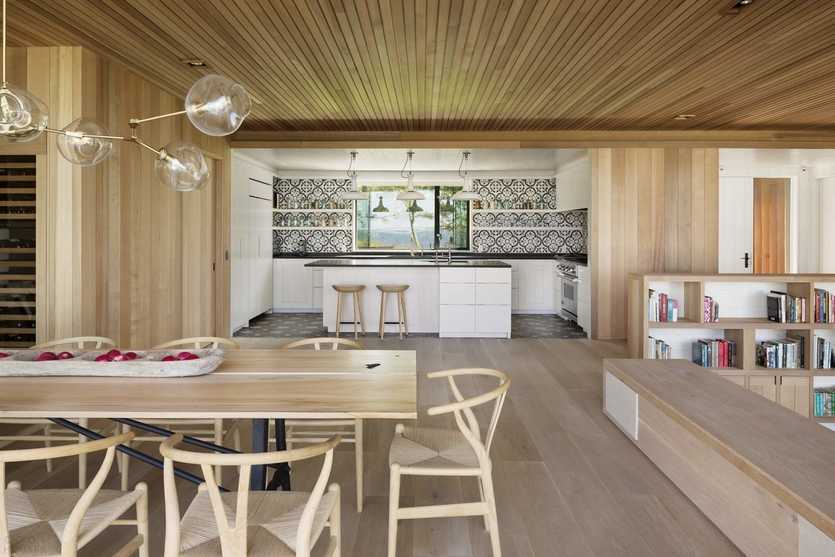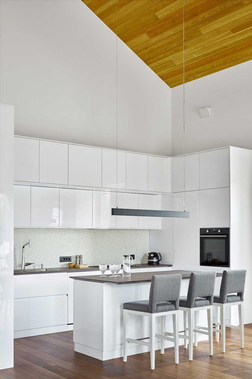 Ниже представлены фото, демонстрирующие дизайн кухни, совмещенной с гостиной и столовой в частном и загородном доме.