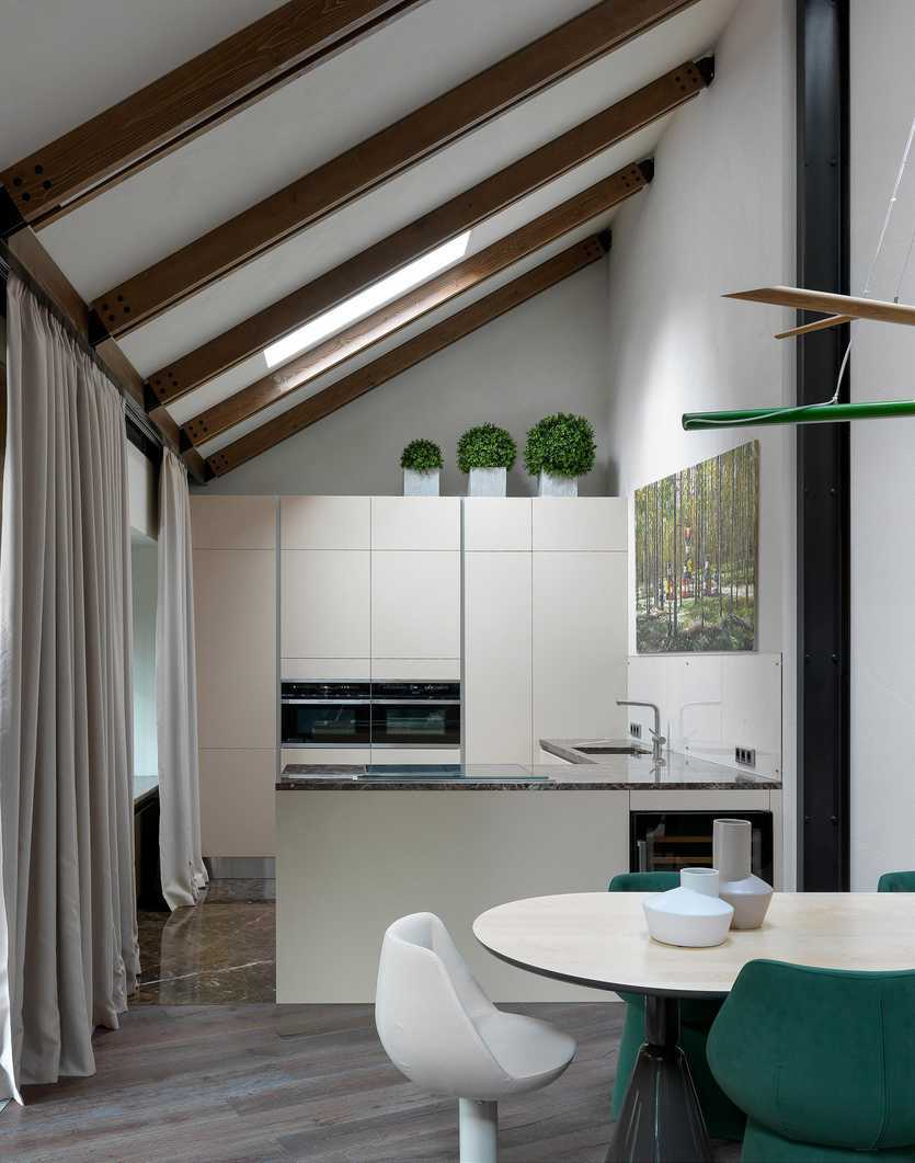 На фото: Дизайн кухни-гостиной в двухуровневой квартире