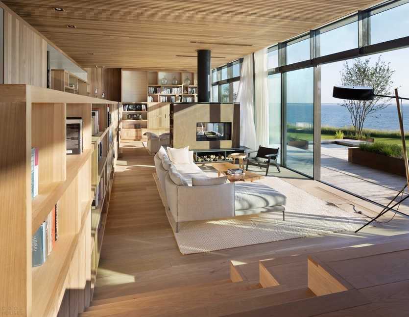 Если ваш дом находится в лесной чаще или у озера, то лучше выбрать дизайн в деревенском духе. Дерево в интерьере частного дома передает атмосферу местности.