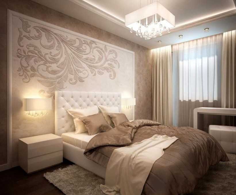 Рельефные обои – еще один подходящий для спальни вариант. Рисунок на них может быть любым, значение имеет не гамма, или орнамент, а рельеф. Лучше всего, говорят дизайнеры, для спальни подбирать однотонные варианты, приглушенные. С их помощью можно одновременно внести в помещение динамику и оживление, а с другой – сохранить атмосферу уюта и комфорта.