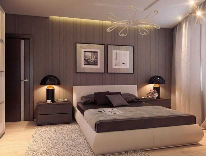 Присутствие темного фона в интерьере спальни допустимо только в том случае, если комната достаточно освещена.