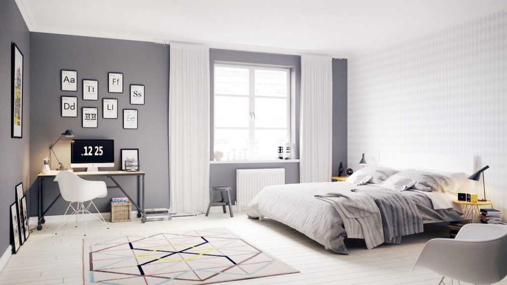 Что касается обоев для спальни в скандинавском стиле, то здесь все довольно просто. Данный интерьер предполагает некоторый минимализм как в наполнении комнат, так и в их отделке. Поэтому наиболее классическими расцветками являются белые или серые обои. Однако однотонные обои подойдут в случае, если в комнате уже присутствуют яркие элементы декора. А вот для тех, кто хочет сделать комнату более оригинальной, есть прекрасный выход – обои с принтом. Скандинавский стиль не любит слишком шикарных узоров, однако приветствует лаконичные геометрические мотивы обоев.