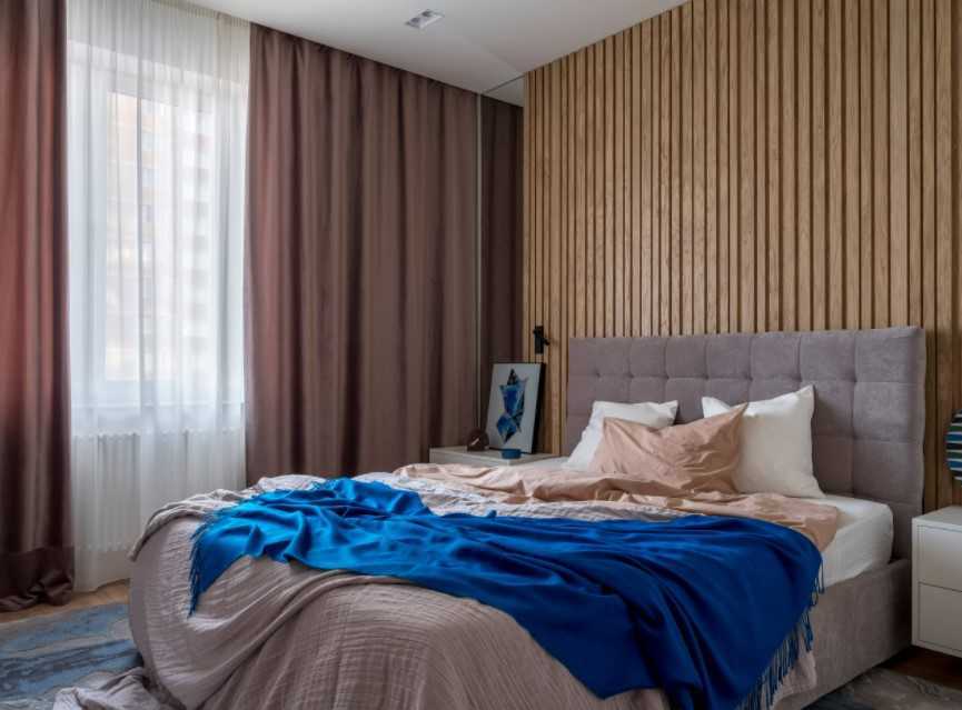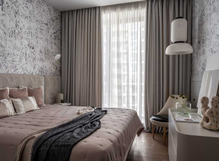 Беж идеален для отделки спальни, его мягкость способствует расслаблению и восстановлению сил. Уютно будут смотреться комбинации с натуральными материалами: деревом, текстилем и шерстью.