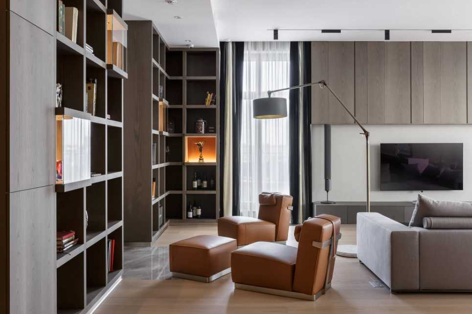 В небольших комнатах основной должна быть светлая палитра, а темный кофе или шоколад — лишь для выделения отдельных деталей. В просторной, наоборот, стены могут быть темными, а мебель и декор — песчаными.