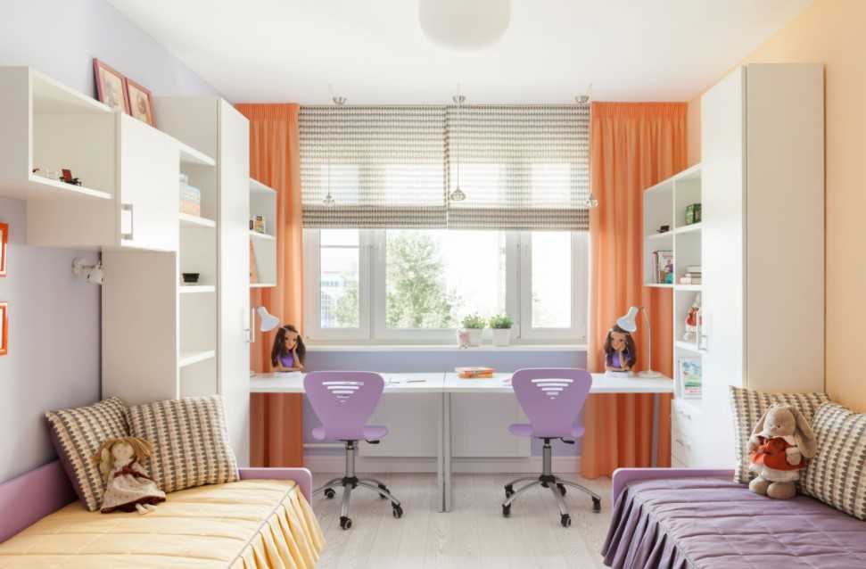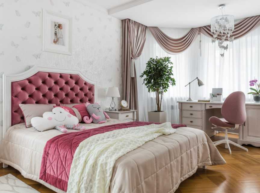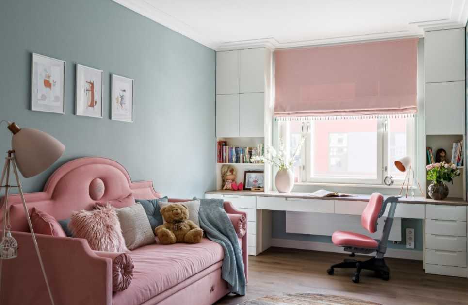 Этот дуэт будет выигрышно смотреться не только в детской комнате для девочки, но и в гостиной, ванной и даже на кухне. Композицию розового и бежевого часто применяют в современных стилях, она не выглядит скучно, освежает, заряжает энергией.
