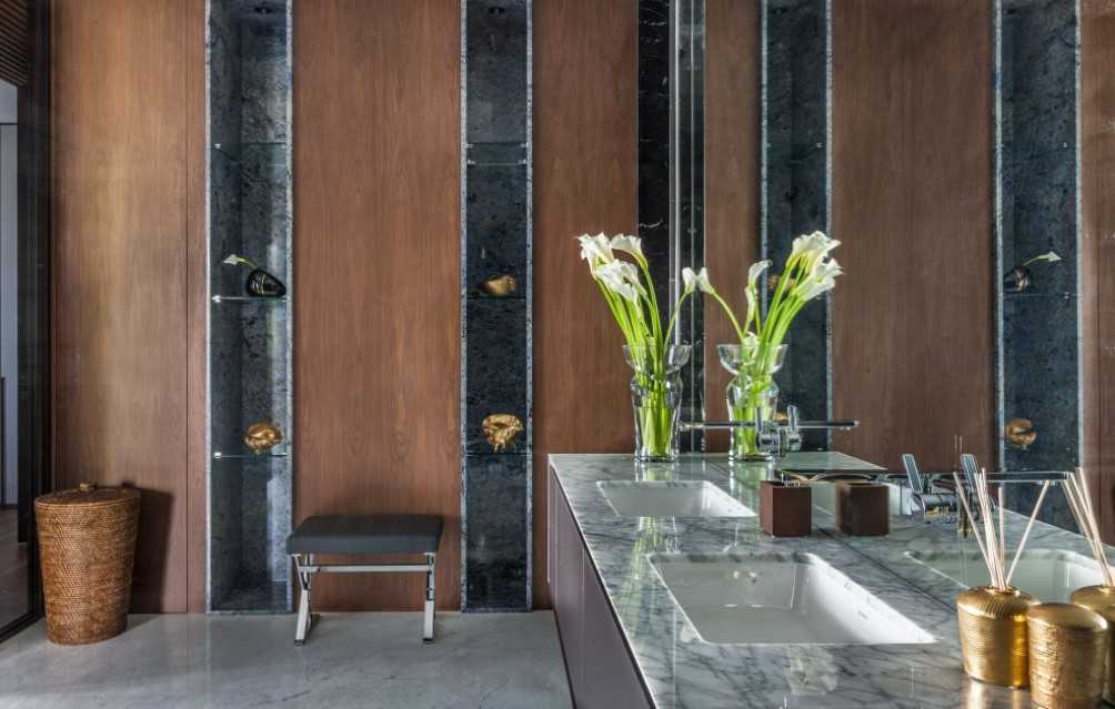 Это сочетание диктует сама природа: оно спокойное, простое и понятное. Коричневый здесь выступает в роли более темного, выделяющего — с ним можно добиться ощущения глубины, раздвинуть стены, поднять потолок.