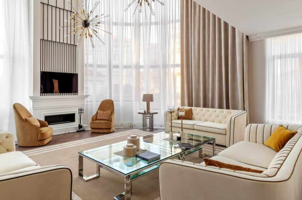 Бежевый интерьер гостиной считается классикой. В таком тоне можно оформить как просторный, так и небольшой по площади зал.