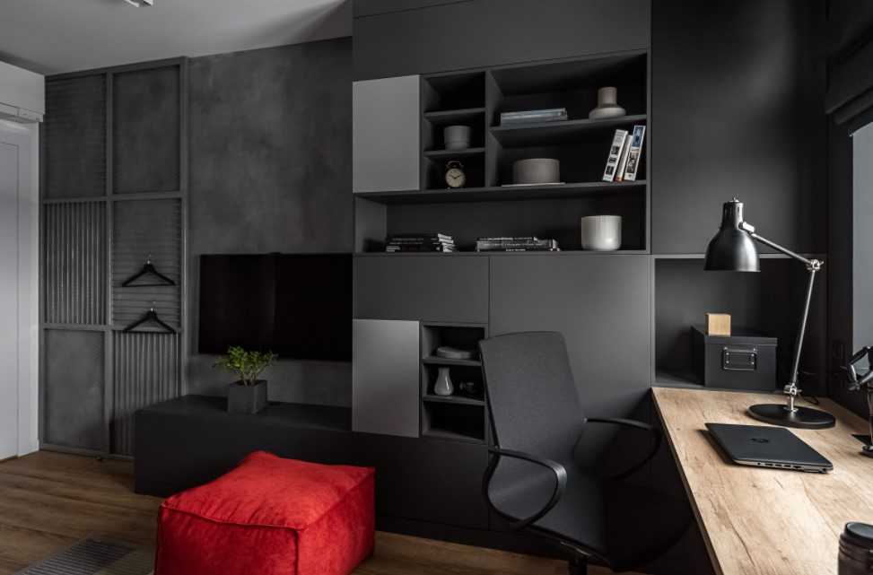 Чтобы общий вид не казался скучным, разбавьте цветными акцентами: изумрудный, индиго, бордо.