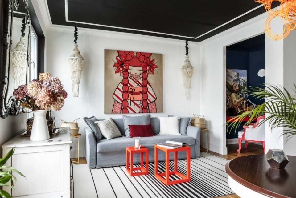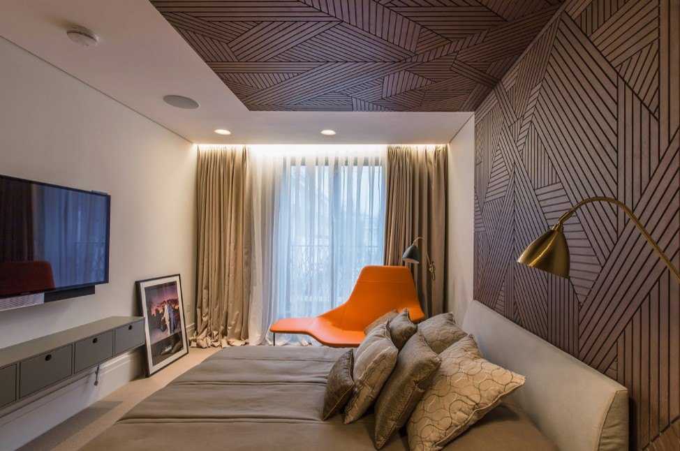 Но это всё лирика. Вот вам фото стильных простых потолков. Оказывается, чтобы было круто, не обязательно делать десять уровней, миллион светодиодных лент и глянец, кто бы мог подумать.