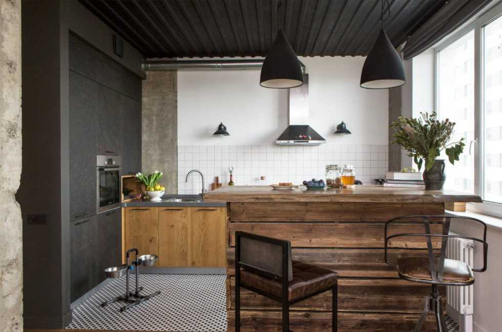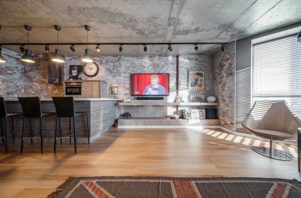 В стиле лофт как правило используют матовое покрытие. С помощью разных цветов можно обыграть разные зоны.