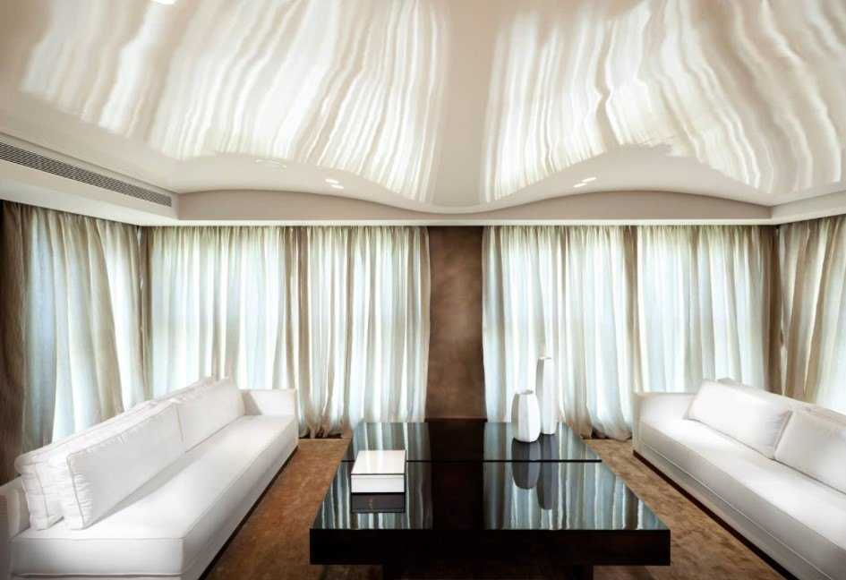 Для любого интерьера можно подобрать подходящий вариант исполнения потолка. Сегодня предлагается широкий ассортимент текстур и цветов, позволяющий установить красивые натяжные потолки для гостиной, гармонично дополнив заданный стиль помещения.