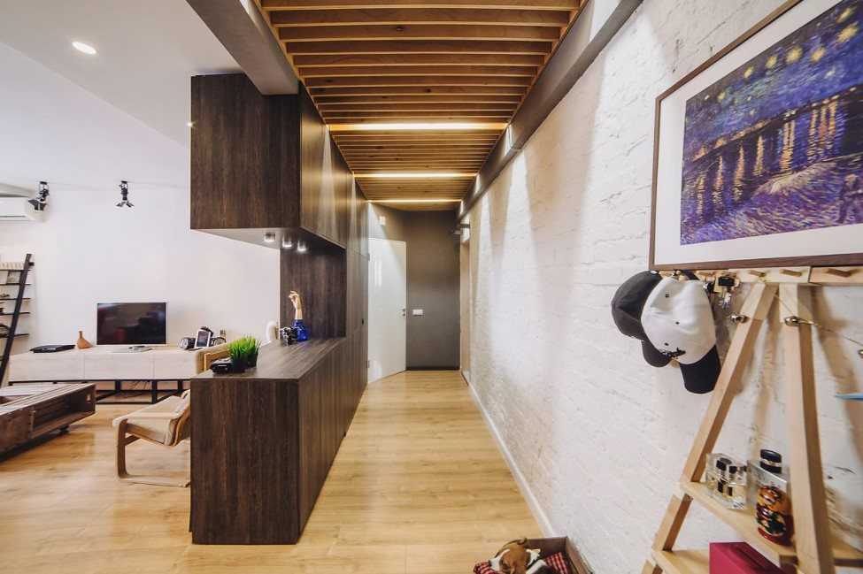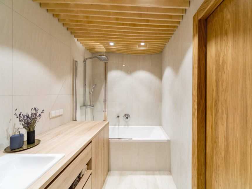 - деревянные – экологический чистый материал. Это способ отделки потолка, предполагающий использование деревянных реек, вагонки или ламината. Такой потолок в маленькой прихожей, конечно, будет выглядеть странно;