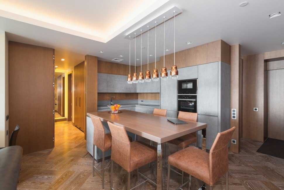 При высоких потолках вы можете использовать самые разные виды подвесных, комбинированных и натяжных конструкций, экспериментировать с подсветкой и освещением. А придать более современного вида помещению могут многоуровневые гипсокартонные конструкции в комбинации с натяжными полотнами и зеркальными вставками. А кассетные разновидности подчеркнут любой современный стиль.